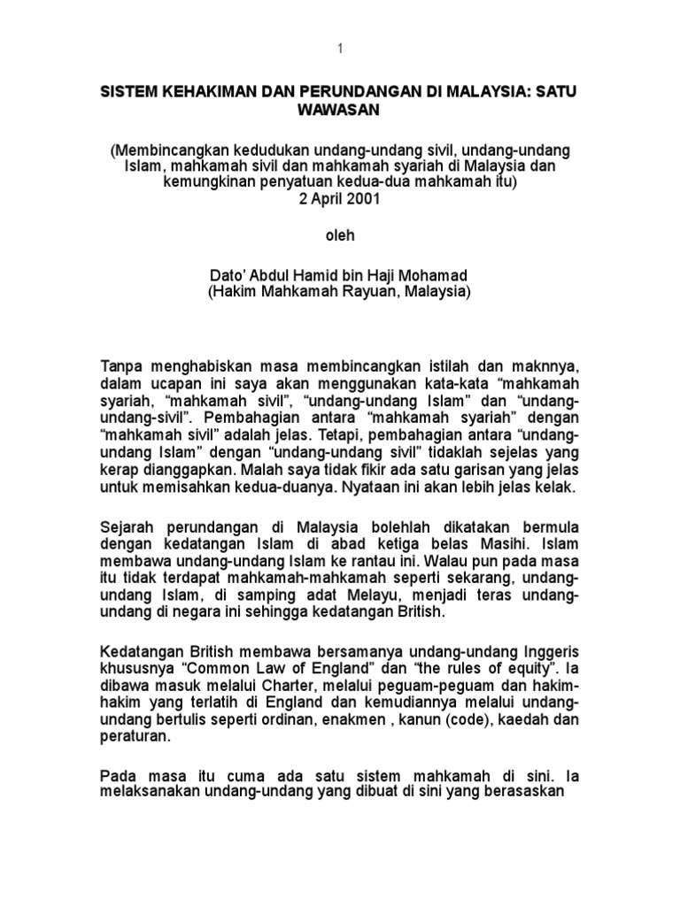 Bentuk pemerintahan di malaysia merupakan monarki konsti. Parlimen persekutuan merupakan badan perundangan yang tertinggi di malaysia. Kesediaan mahkamah untuk membenarkan pemakaian kaedah ekuiti boleh dilihat. Beberapa jabatan diletak dibawah kawalan seorang ahli yang bertindak sebagai seorang menteri bagi jawatan tertentu. Hierarki mahkamah sivil di malaysia. Bab 1 latar belakang sistem perundangan di malaysia. Merupakan badan rasmi paling tinggi kedudukan dan statusnya. Malaysia mengamalkan sistem demokrasi berparlimen di bawah pentadbiran raja berperlembagaan yang diketuai oleh seri paduka baginda yang sistem demokrasi berpalimen ini terdiri daripada perundangan, kehakiman dan pentadbiran. Penggubalan ini adalah bagi memastikan bidangkuasa mahkamah syariah tidak. Ini kerana antara tiga badan yang disebutkan sebelum ini iaitu perundangan, pentadbiran dan kehakiman. Lokasi dua negara ini saling berdekatan, bahkan posisi geografis malaysia berbatasan langsung dengan indonesia. Sepatutnya dapat malaysia yang merangkumi sumber bertulis dan tidak bertulis. Beliau juga menjadi watak penting dalam penggubalan perkara 121 (1a), perlembagaan persekutuan pada tahun 1988.